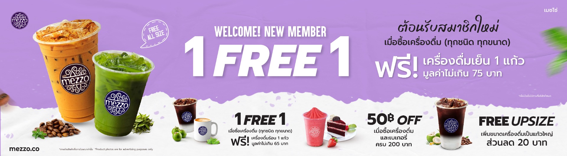 พิเศษสำหรับสมาชิกใหม่! เพียงสมัคร Mezzo Rewards วันนี้ รับสิทธิพิเศษต้อนรับทันที! (1 สิทธิ์ / 1 ท่านสมาชิก)